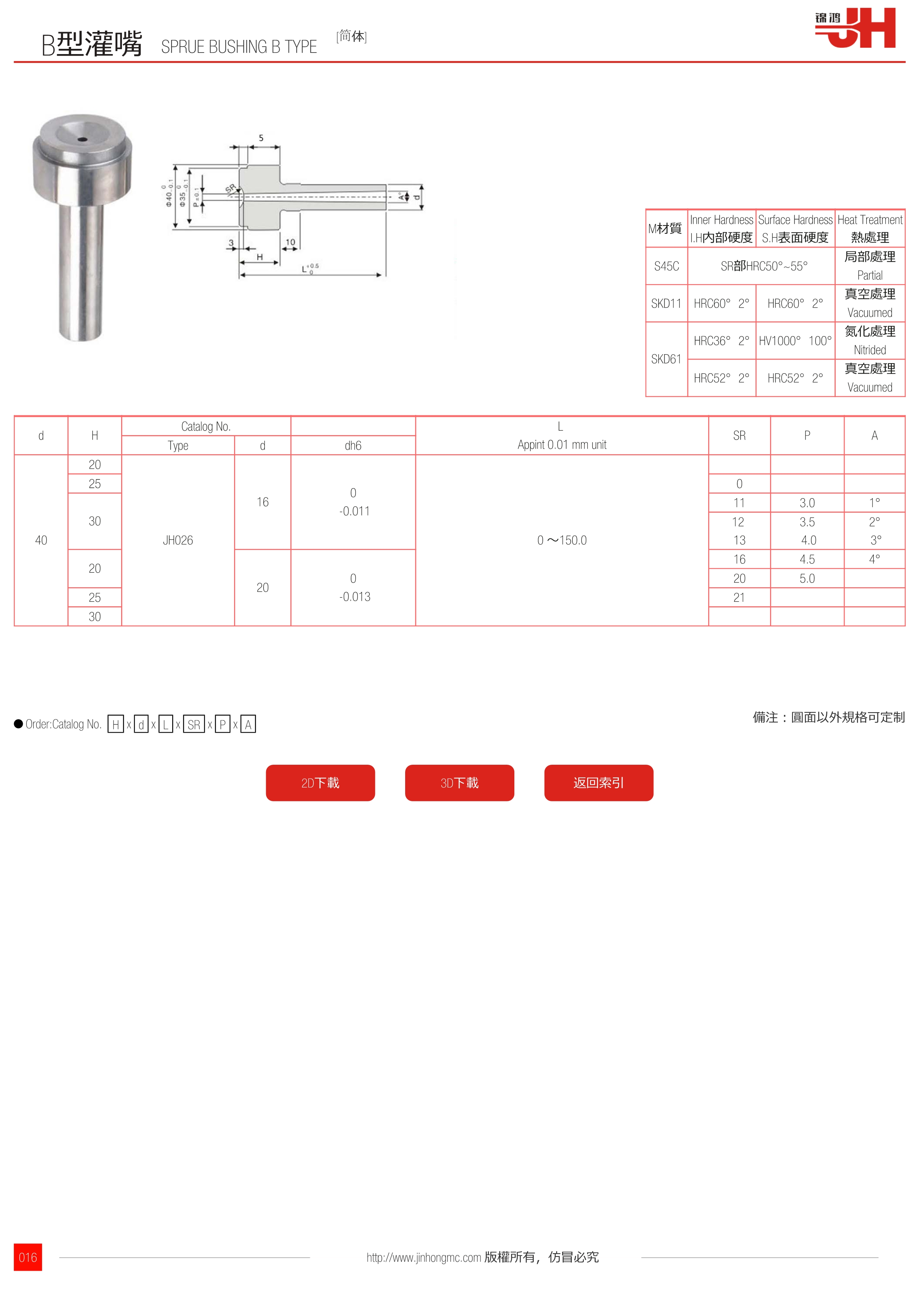 | 40 | 20 | JH026 | 16 | 0 -0.011 | 0 ?150.0 | |||