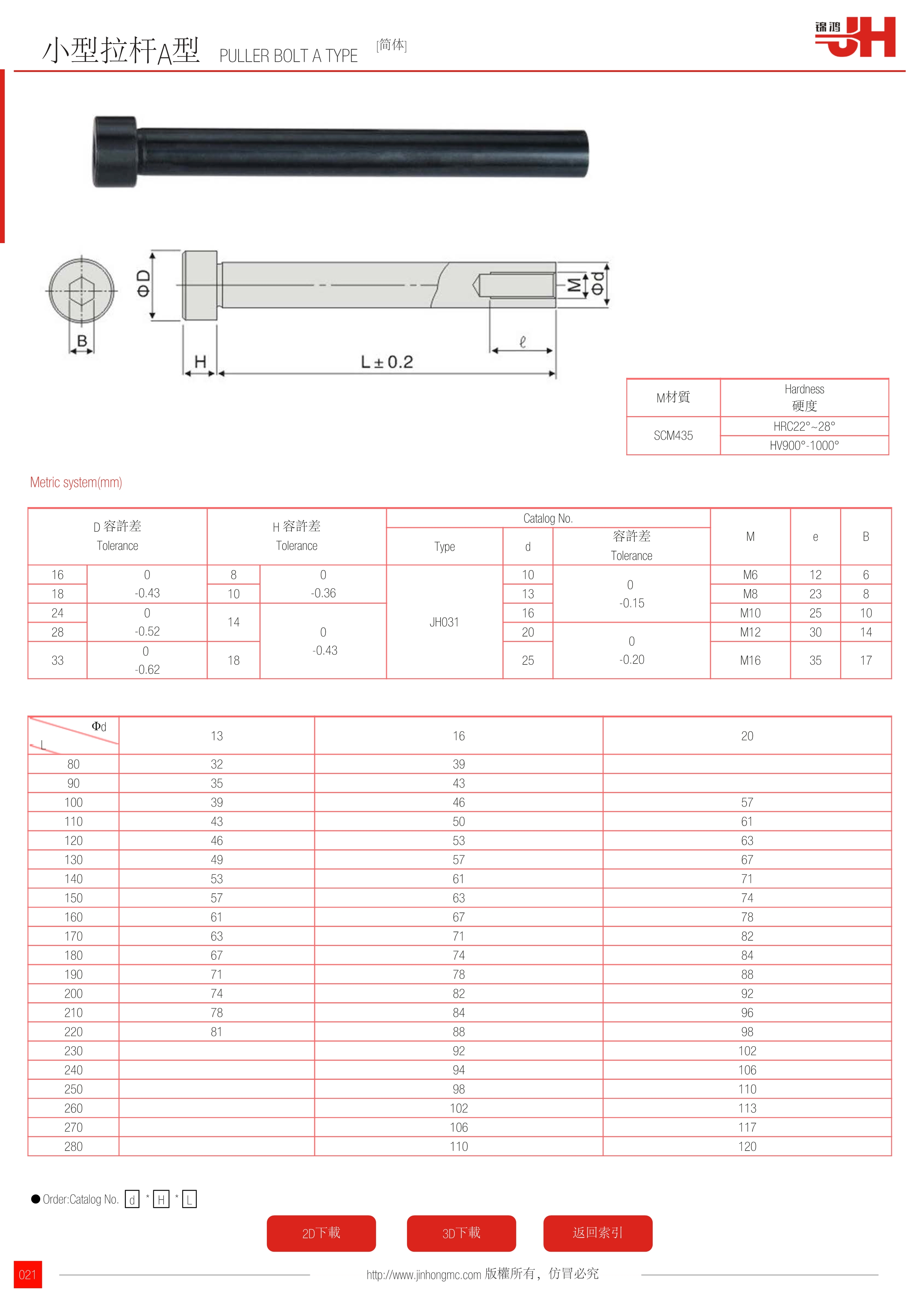 | D 容許差 Tolerance | H 容許差 Tolerance | Catalog No. | M | e | B | ||||