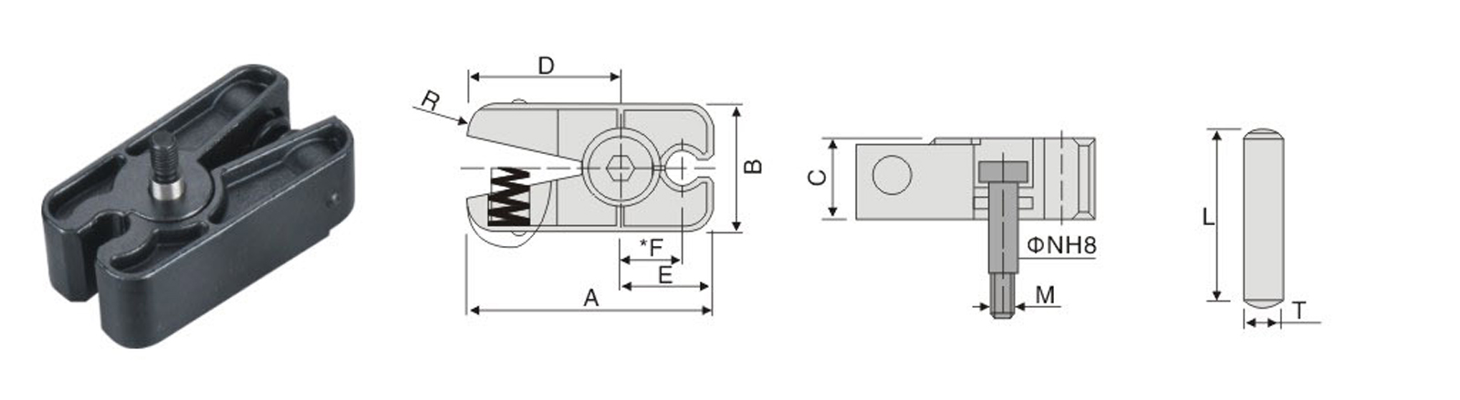 相対來(lái)說(shuō), 該系列的限位夾"F"·距高更短,