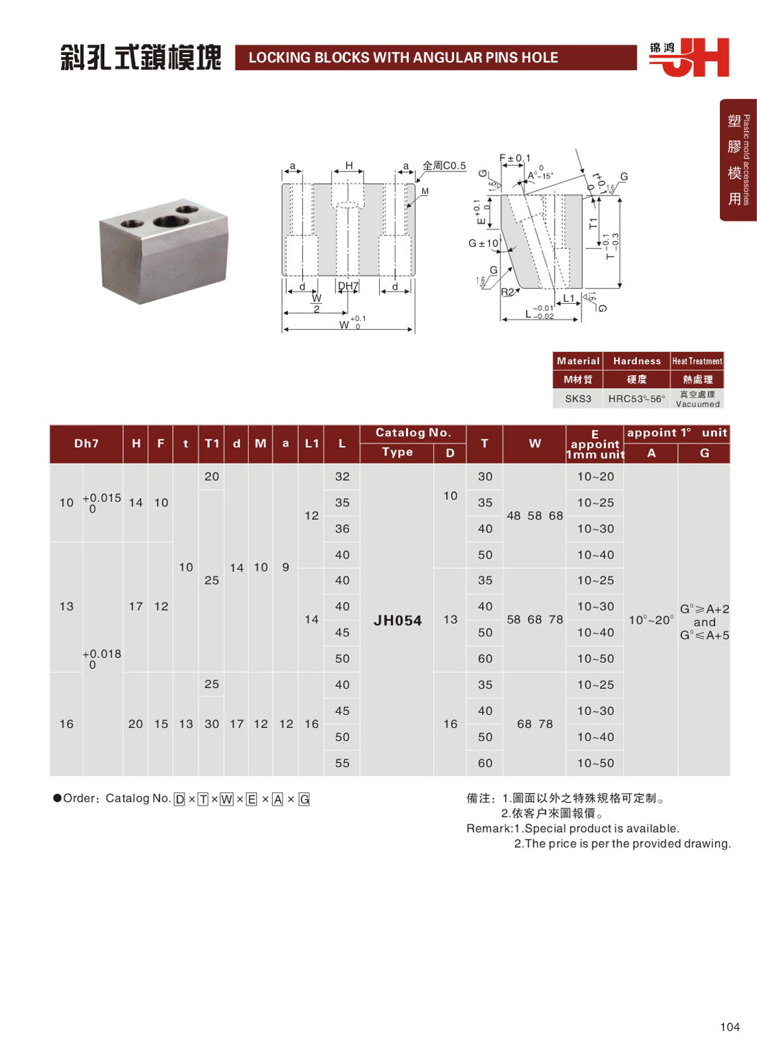 訂購:104-斜孔式鎖模塊 JH054