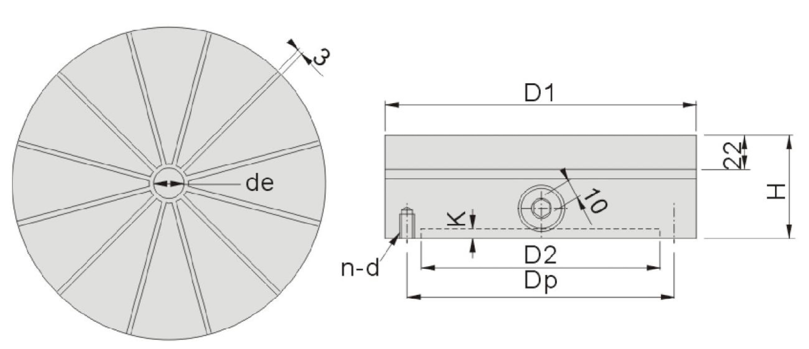 | Order No. | Model | D1 | de | D2 | K | n | d | Dp | H | N.W. | ||