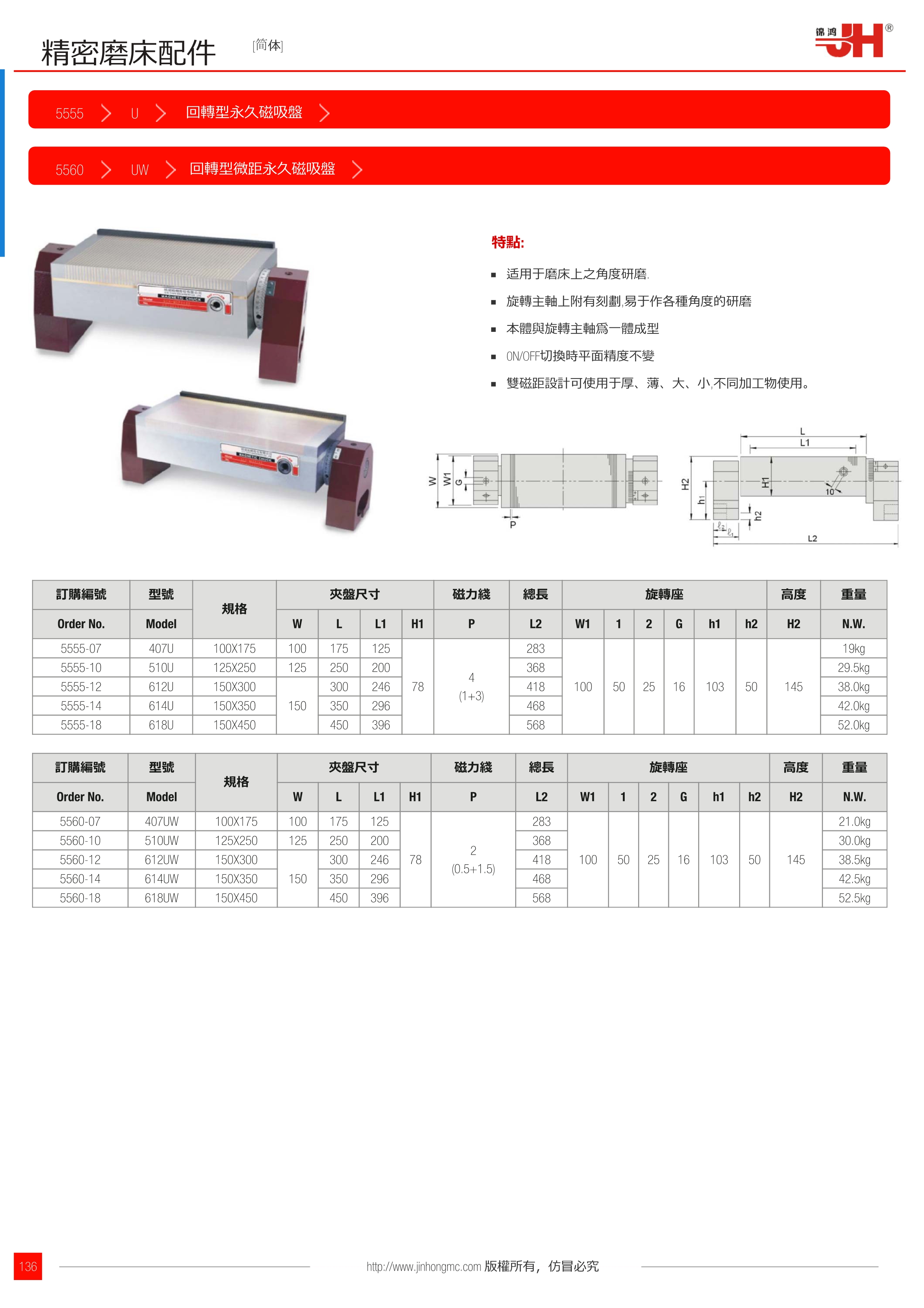 | 訂購編號 | 型號 | 規格 | 夾盤尺寸 | 磁力綫 | 總長 | 旋轉座 | 高度 | 重量 | ||||||||
