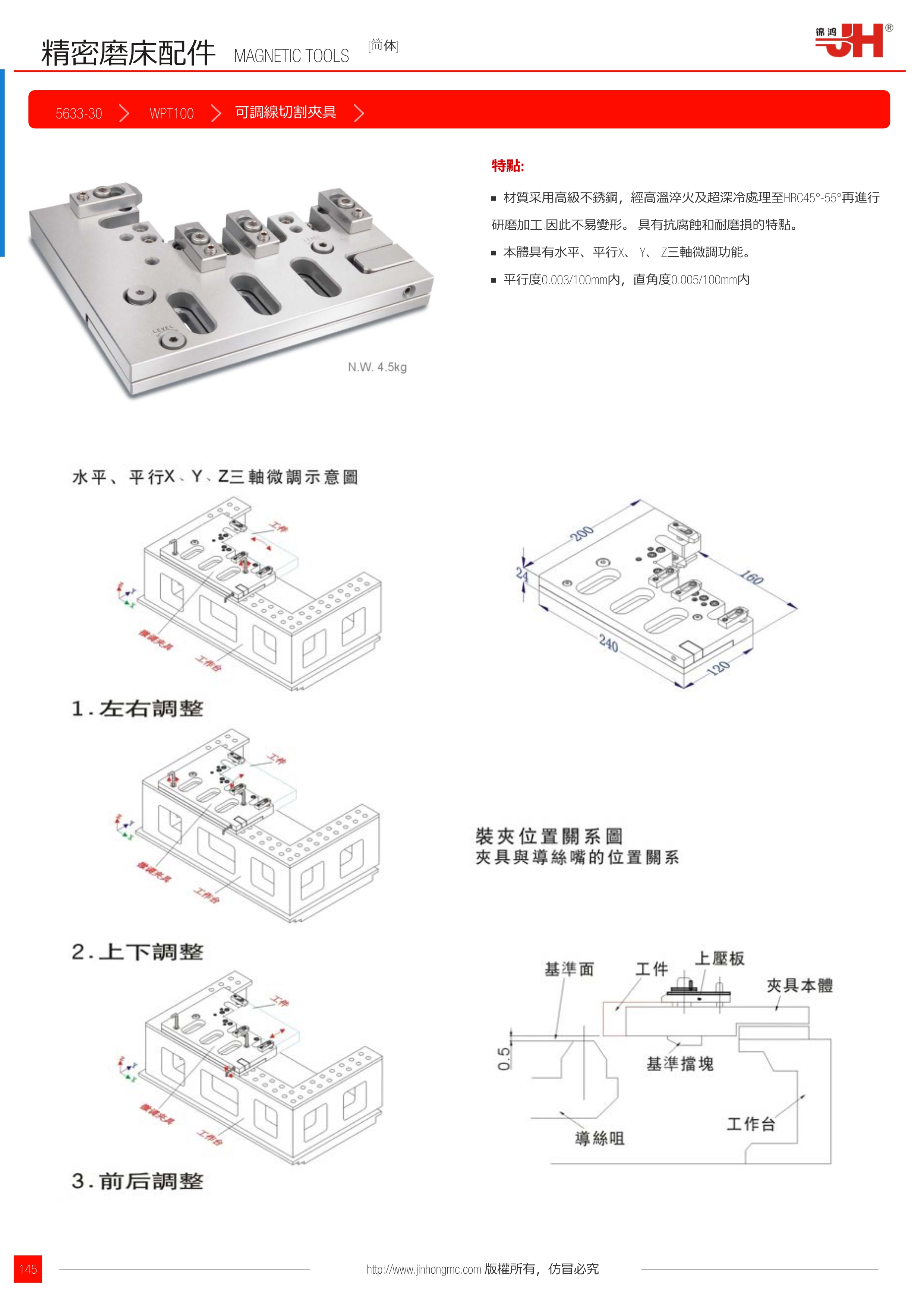 本體具有水平、平行X、 Y、 Z三軸微調功能。