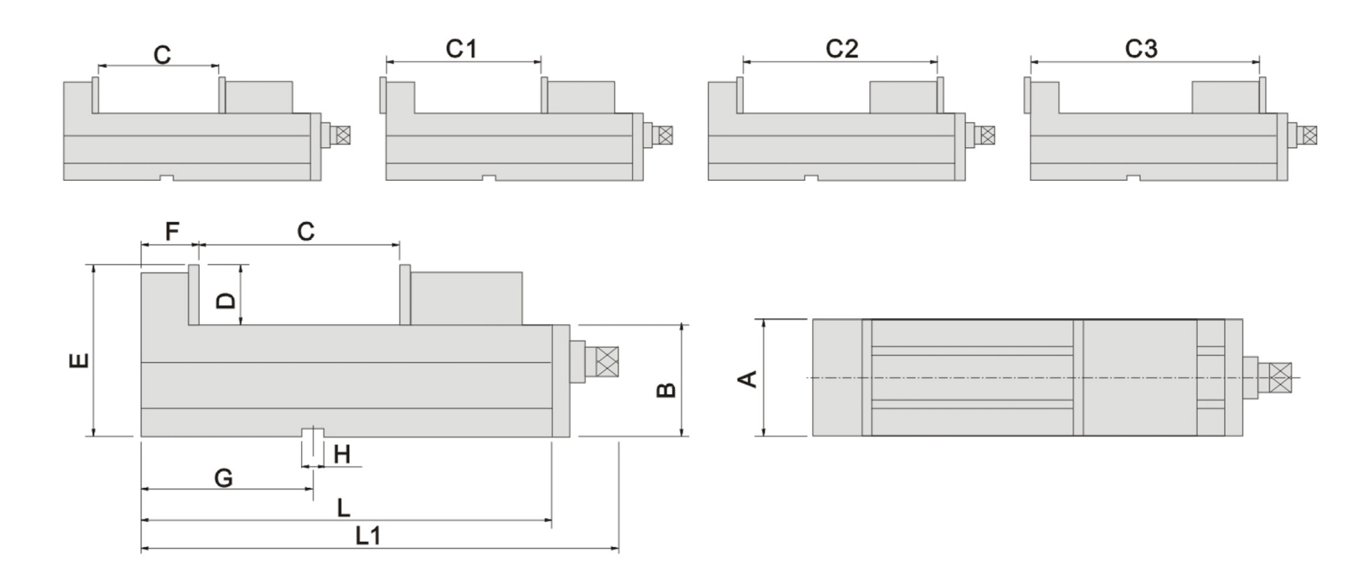 | 訂購(gòu)編號(hào) | 型號(hào) | A | B | 夾持範(fàn)圍 | D | E | F | G | H | L | L1 | 夾持力 | 重量 | |||