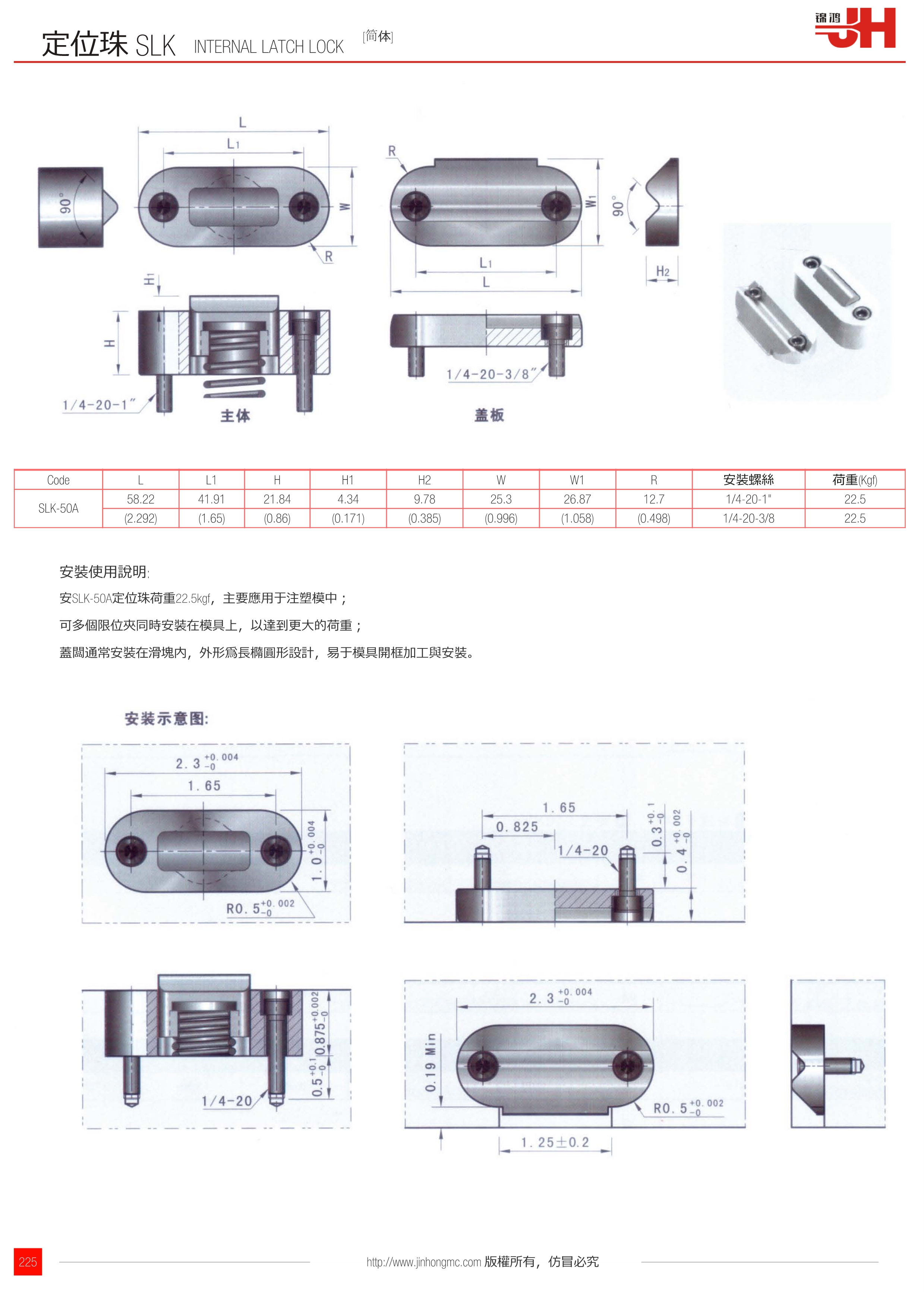 • 安SLK-50A定位珠荷重22.5kgf,主要應用于注塑模中;