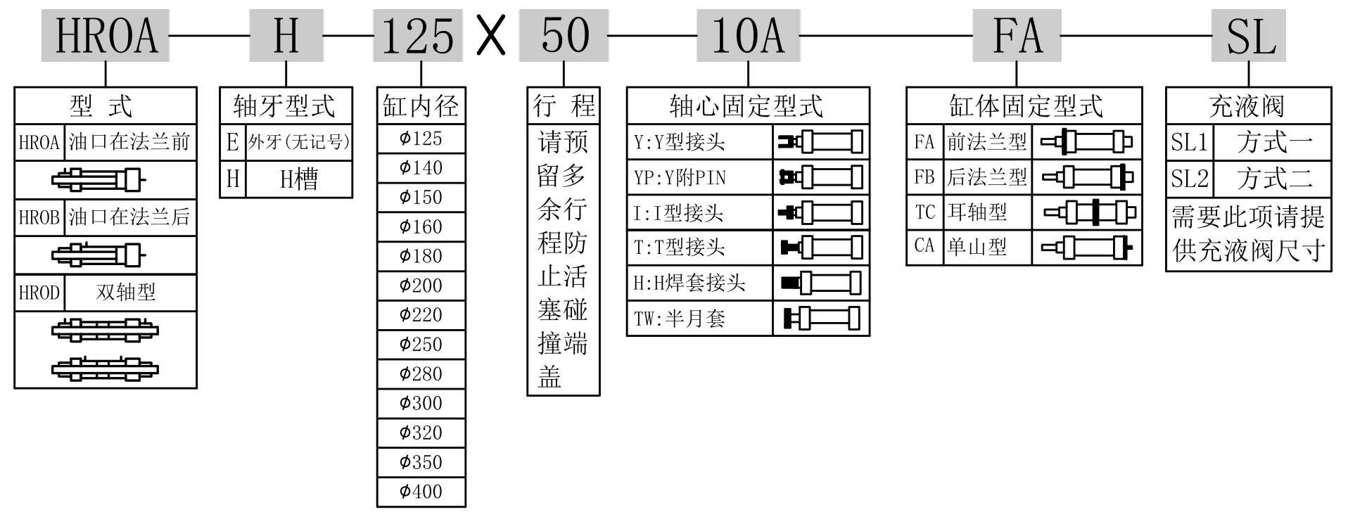 | 油壓缸內徑 Bore sizes of cy linder(mm) | Φ125、Φ140、Φ150、Φ160、Φ180、Φ200、Φ220、Φ250、Φ280、Φ300、Φ320、Φ350、Φ400 |