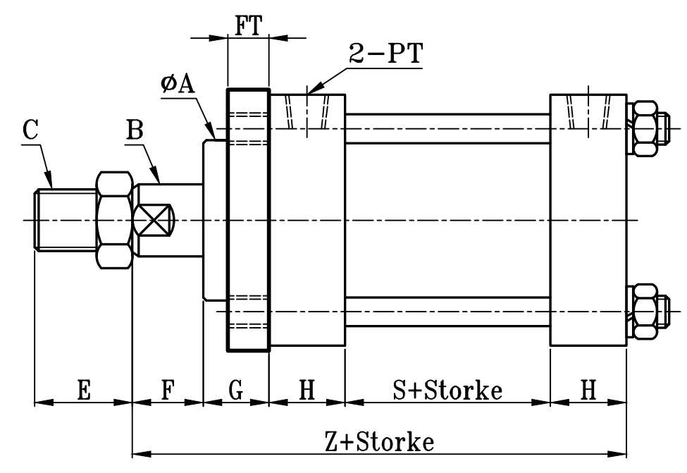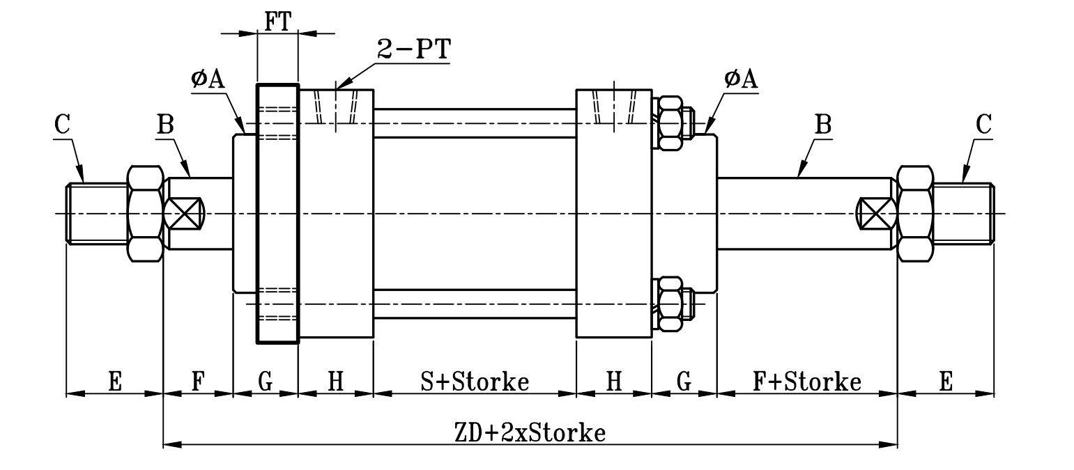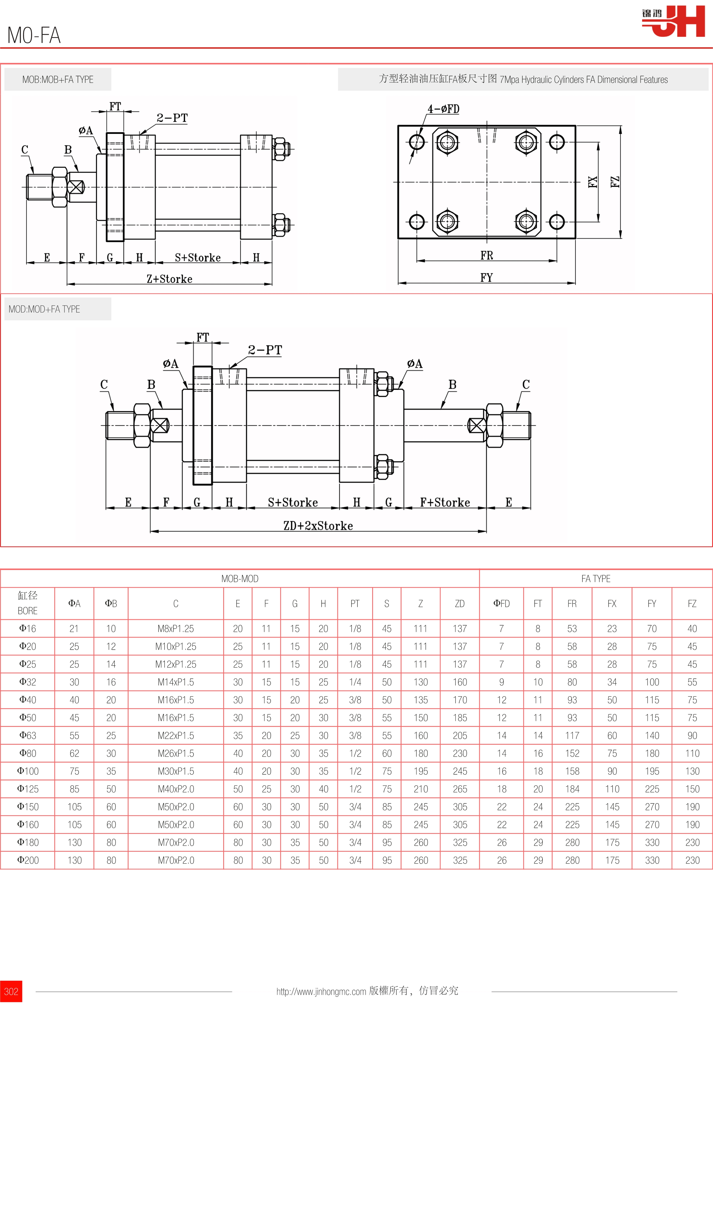 | 缸徑 BORE | ΦA(chǔ) | ΦB | C | E | F | G | H | PT | S | Z | ZD | ΦFD | FT | FR | FX | FY | FZ |