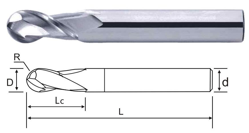 | 商品編號 Product number | 半徑(R) Radius of R | 刃徑(D) Blade diameter | 刃長(Lc) Blade length | 柄徑(d) Shank diameter | 全長(L) Overall length |
