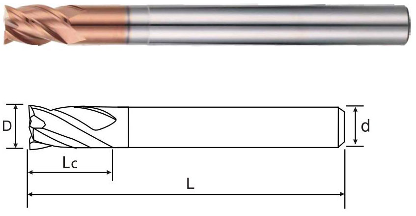| 商品編號 Product number | 刃徑(D) Blade diameter | 刃長(Lc) Blade length | 柄徑(d) Shank diameter | 全長(L) Overall length | 刃數 Flute |