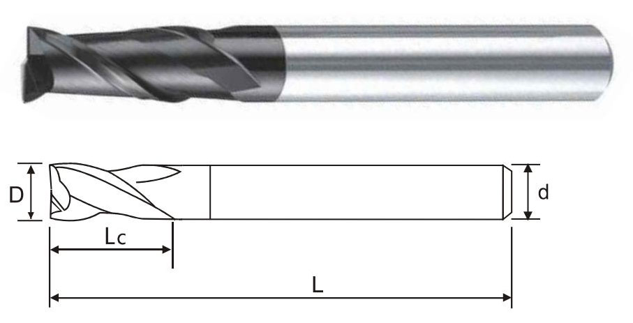 | 商品編號 Product number | 刃徑(D) Blade diameter | 刃長(Lc) Blade length | 柄徑(d) Shank diameter | 全長(L) Overall length | 刃數 Flute |