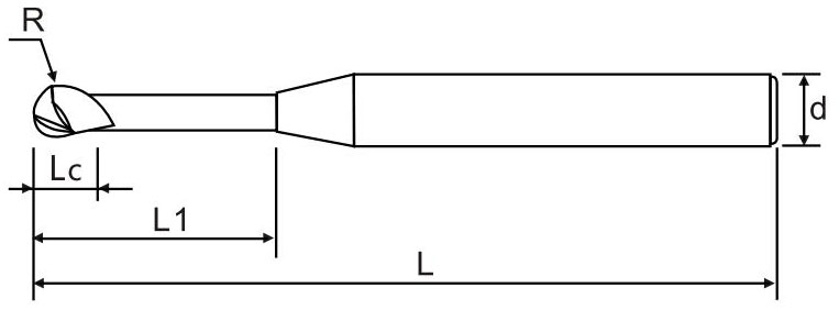 | 商品編號 Product number | 半徑(R) Radius of R | 刃徑(D) Blade diameter | 刃長(Lc) Blade length | 有效長(L1) Effective long | 柄徑(d) Shank diameter | 全長(L) Overall length | 刃數 Flute |